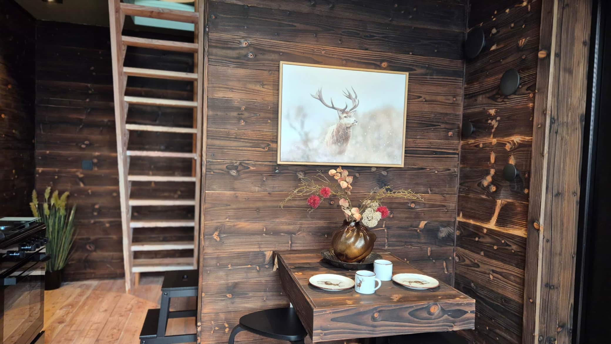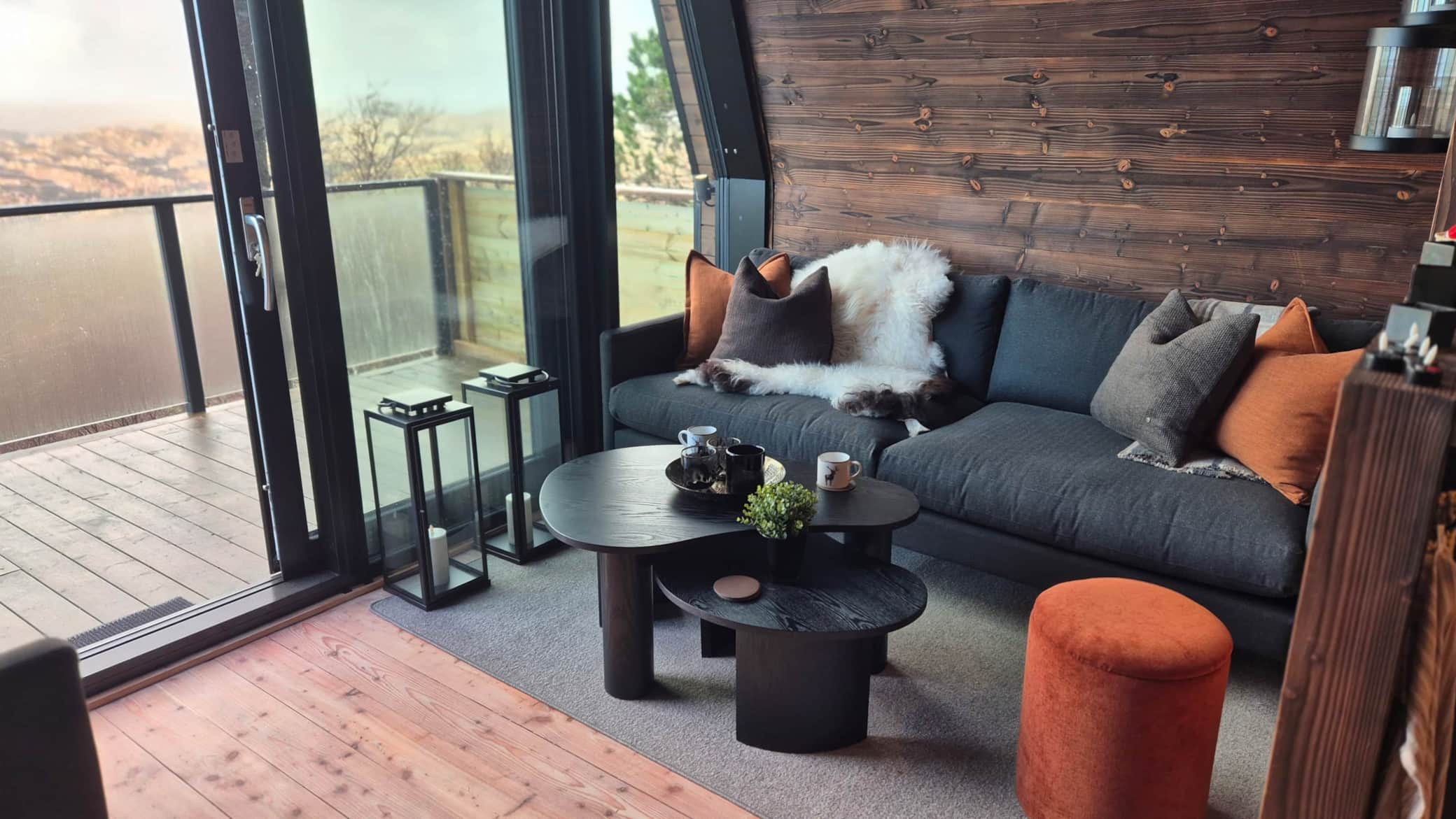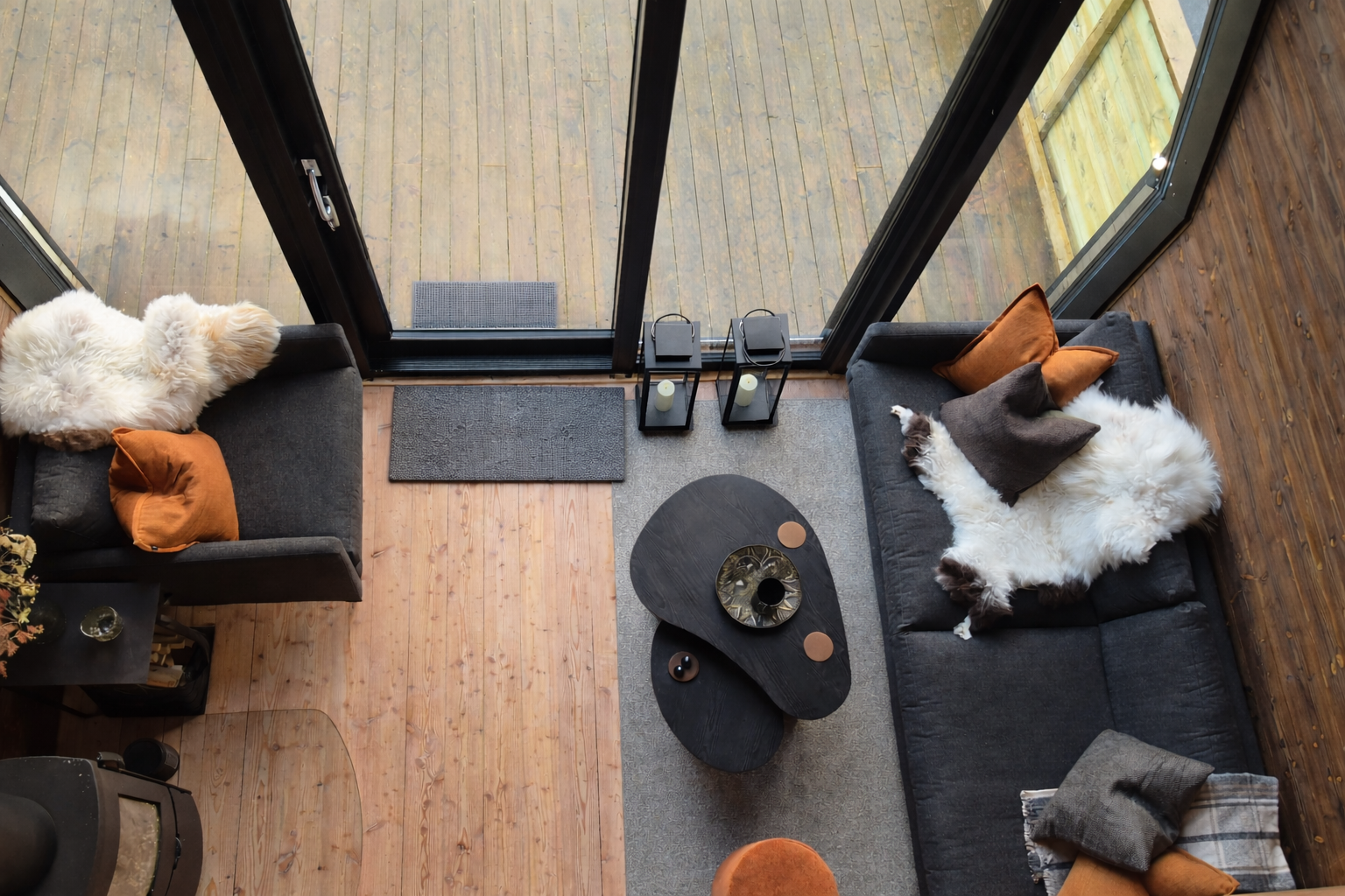 Saga av Kristofer, forma av sonane, behandla med same omsorg og voksslag – og no ligg golvet varmt og levande gjennom heile hytta. Saman dannar desse materiala ikkje berre ei hytte, men ei forteljing som de deler med alle som stig over dørstokken: ei forteljing om natur, om tradisjonar, og om ein familie som står støtt – rotfesta som trea dei har arbeidd med.